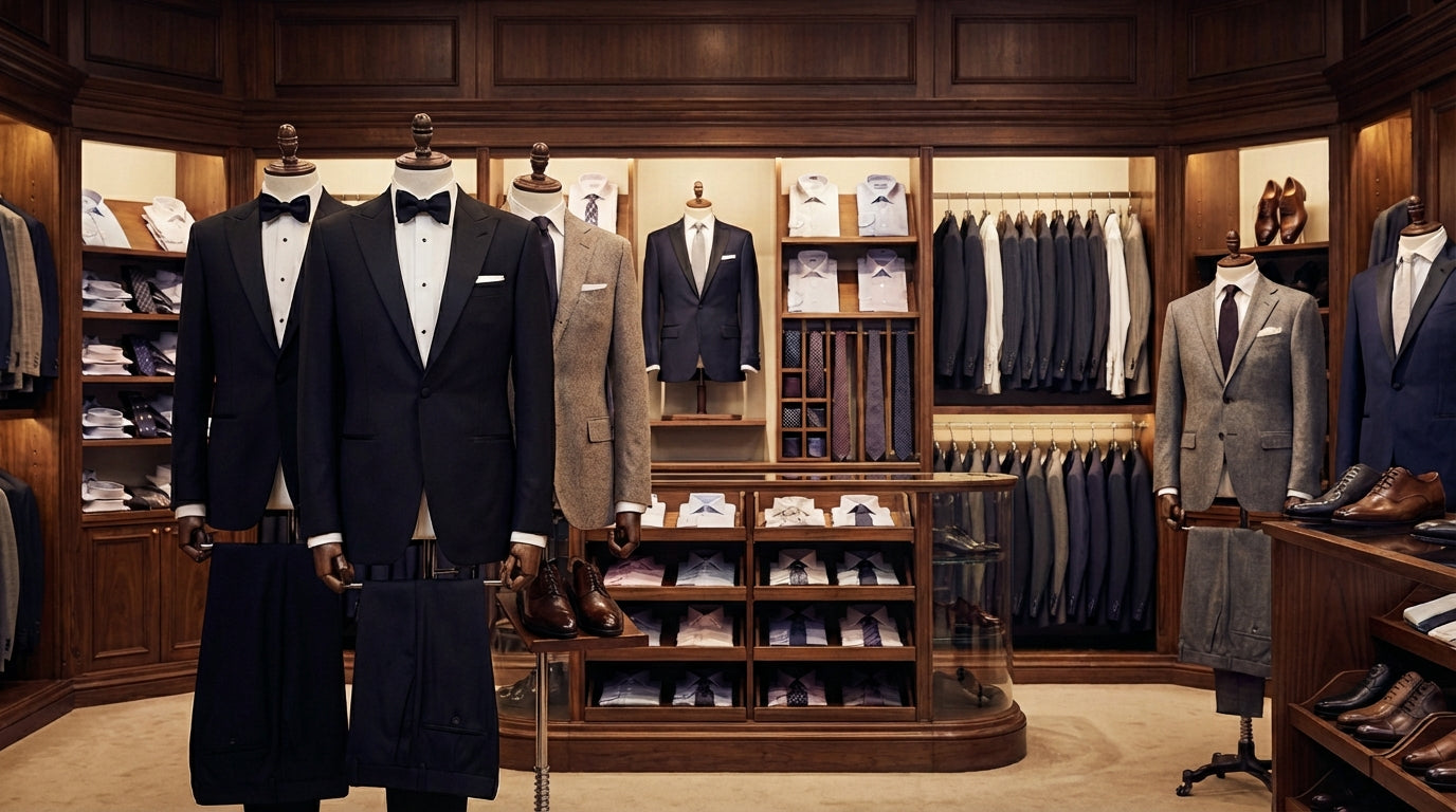 Marineblauer 3-teiliger Tweed-Anzug mit Fischgrätenmuster für Herren