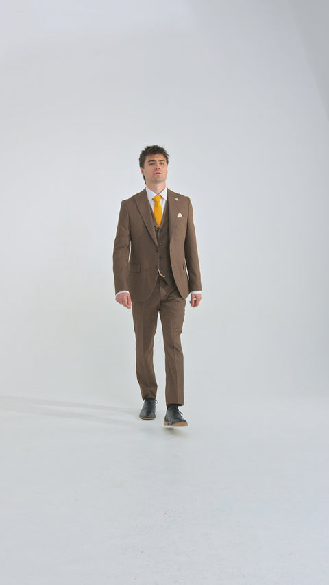 James Herrenanzug, 3-teilig, schlicht, braun, klassische Passform